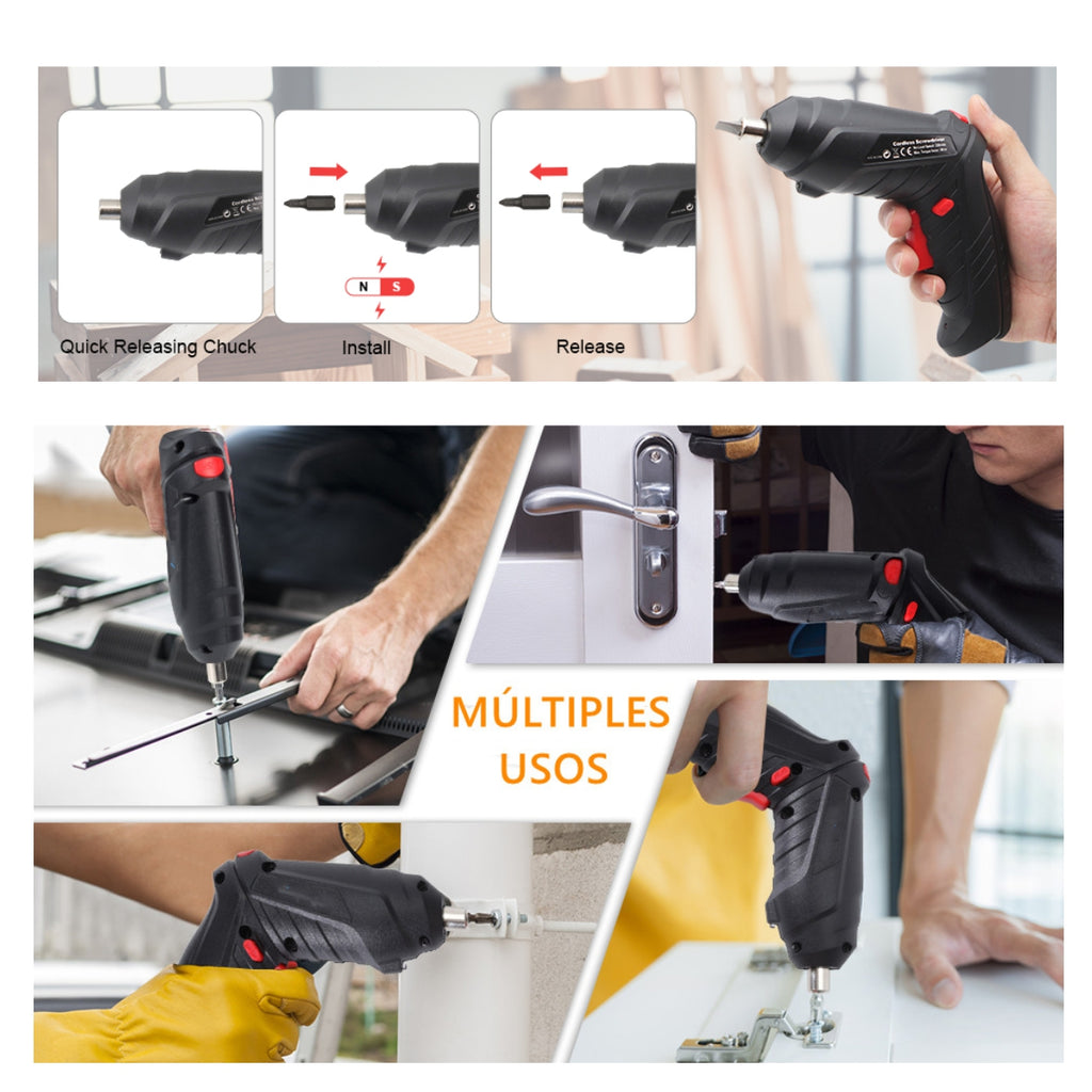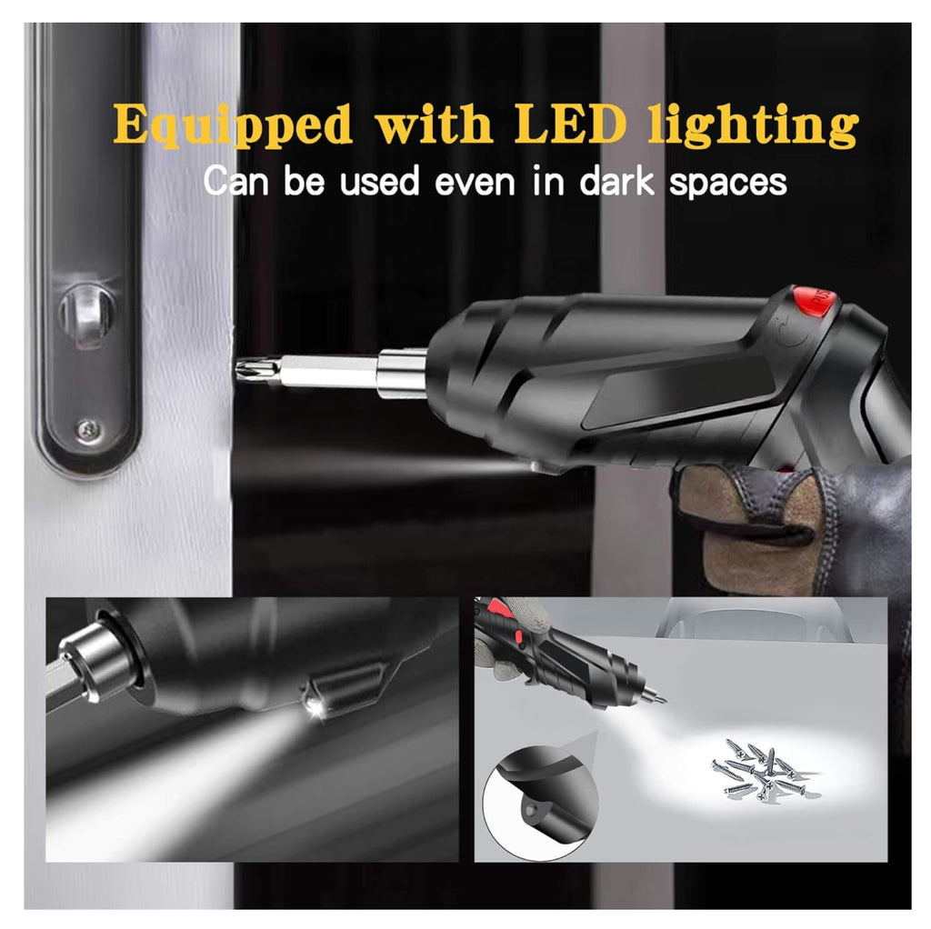 El destornillador eléctrico está hecho de materiales de alta calidad y se somete a estrictas pruebas de calidad para garantizar la seguridad y fiabilidad durante el uso. Equipado con una luz frontal LED, se ilumina automáticamente cuando el taladro eléctrico está en funcionamiento, proporcionando una guía clara a tu objetivo y haciendo que tu trabajo sea más seguro en espacios oscuros o estrechos.
